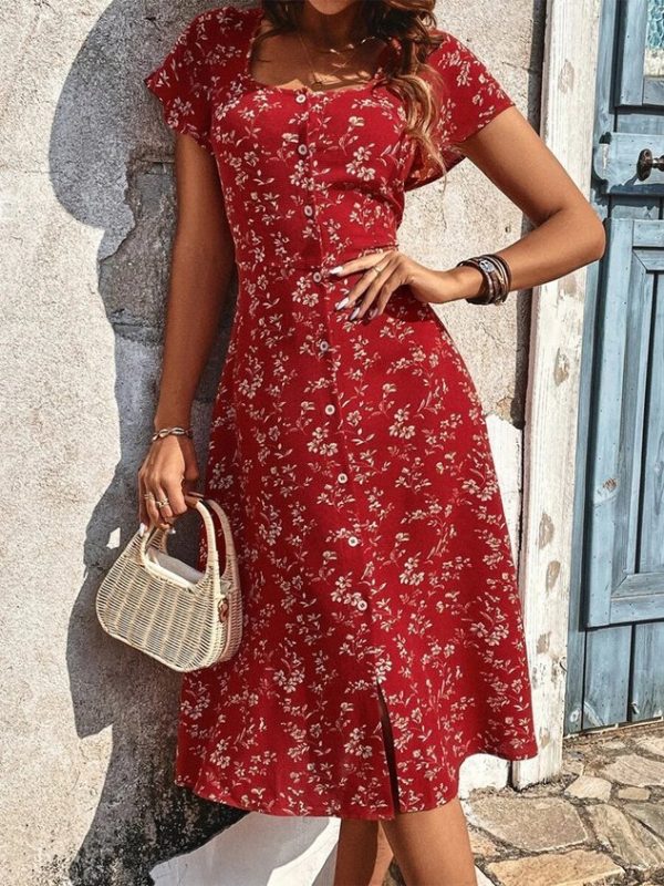Sleeve Length:Short Sleeve Edition type:Regular Fit Dress Length:Midi Accessories:No Sleeve Type:Ruffled Sleeves Waistlines:Natural Elasticity:Micro-Elasticity Silhouette:X-Line Dress type:Others Thickness:Regular Size Type:Regular Size Activity:Daily,Vacation Neckline:Square neck Material:Polyester Pattern:Floral Theme:Summer Style:Elegant Color:Green,Blue,Red Size:S,M,L,XL,XXL Fabric:Polyester95%; Spandex5% Cuff:XS:61.5,S:62.5,M:63.5,L:65,XL:66.5,XXL:68,3XL:69.5,4XL:71,5XL:72.5 Size Sleeve Length Hem Width Shoulder Length Bust cm inch cm inch cm inch cm inch cm inch S 15.5 6.1…