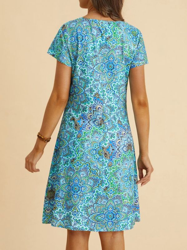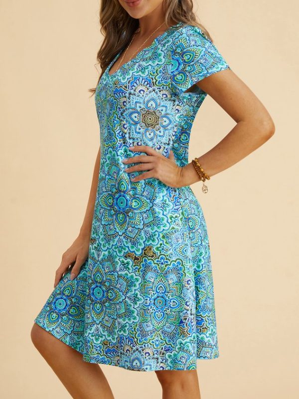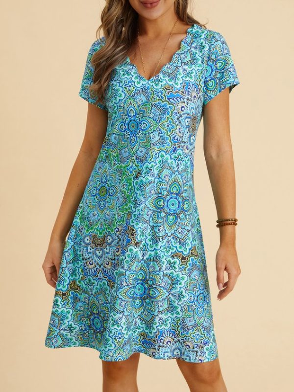 Sleeve Length:Short Sleeve Dress Length:Midi Closure Type:Pullover Edition type:Fit Accessories:No Elasticity:No Elasticity Waistlines:Natural Silhouette:A-Line Dress type:Others Thickness:Lightweight Size Type:Regular Size Activity:Daily Material:Jersey Neckline:V neck Pattern:Ethnic Theme:Summer Style:Casual Color:Green Size:S,M,L,XL,XXL Fabric:Polyester95%; Spandex5% Cuff:XS:33,S:34,M:35,L:36.5,XL:38,XXL:39.5,3XL:41,4XL:42.5,5XL:44 Size Sleeve Length Shoulder Length Bust cm inch cm inch cm inch cm inch S 15 5.9 40 15.7 88.5 34.8…